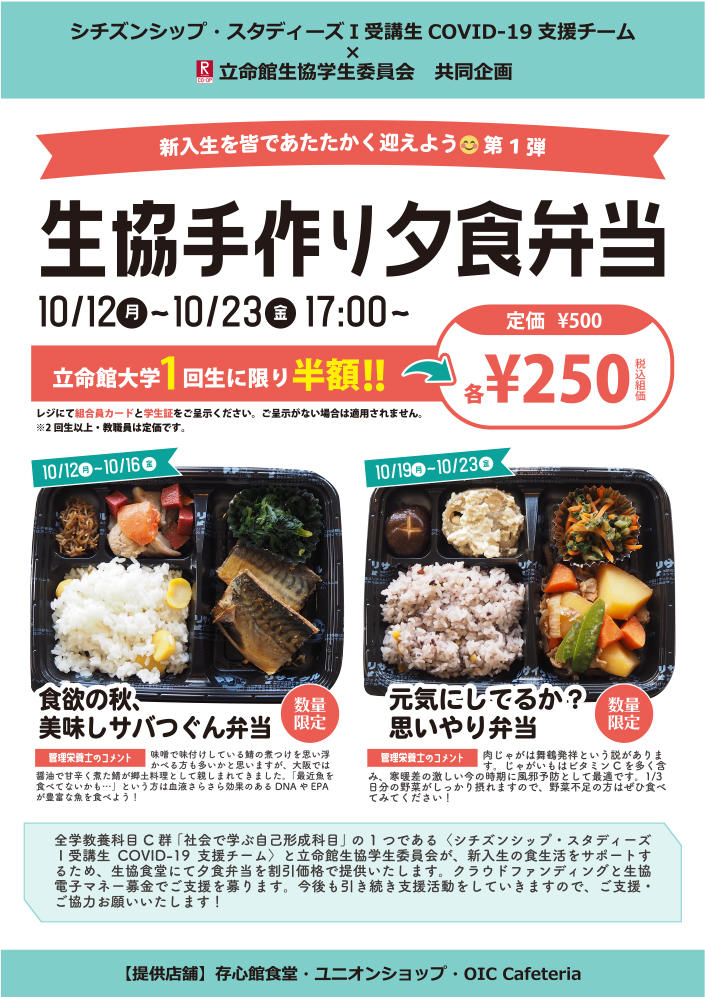 シチズンシップ スタディーズ 受講 Covid 19 援チーム 生協学生委員会 共同企画 新入生をあたたかくみんなでキャンパスに迎えるとりくみ イベント ニュース サービスラーニングセンター 立命館大学
